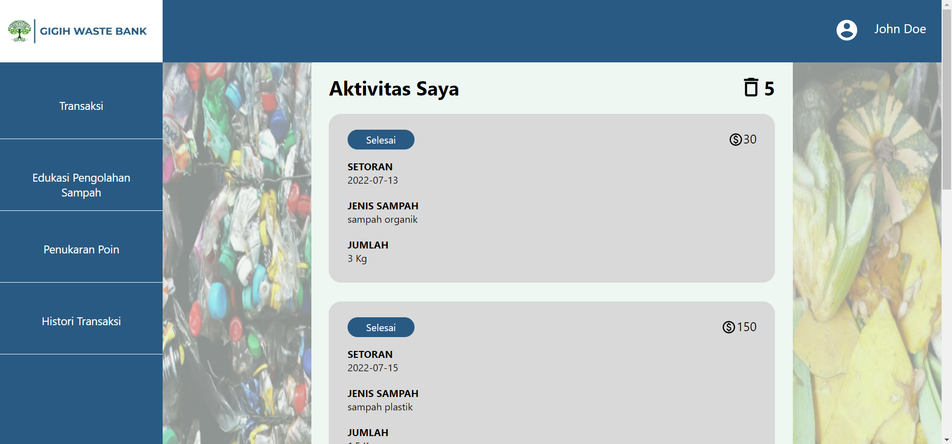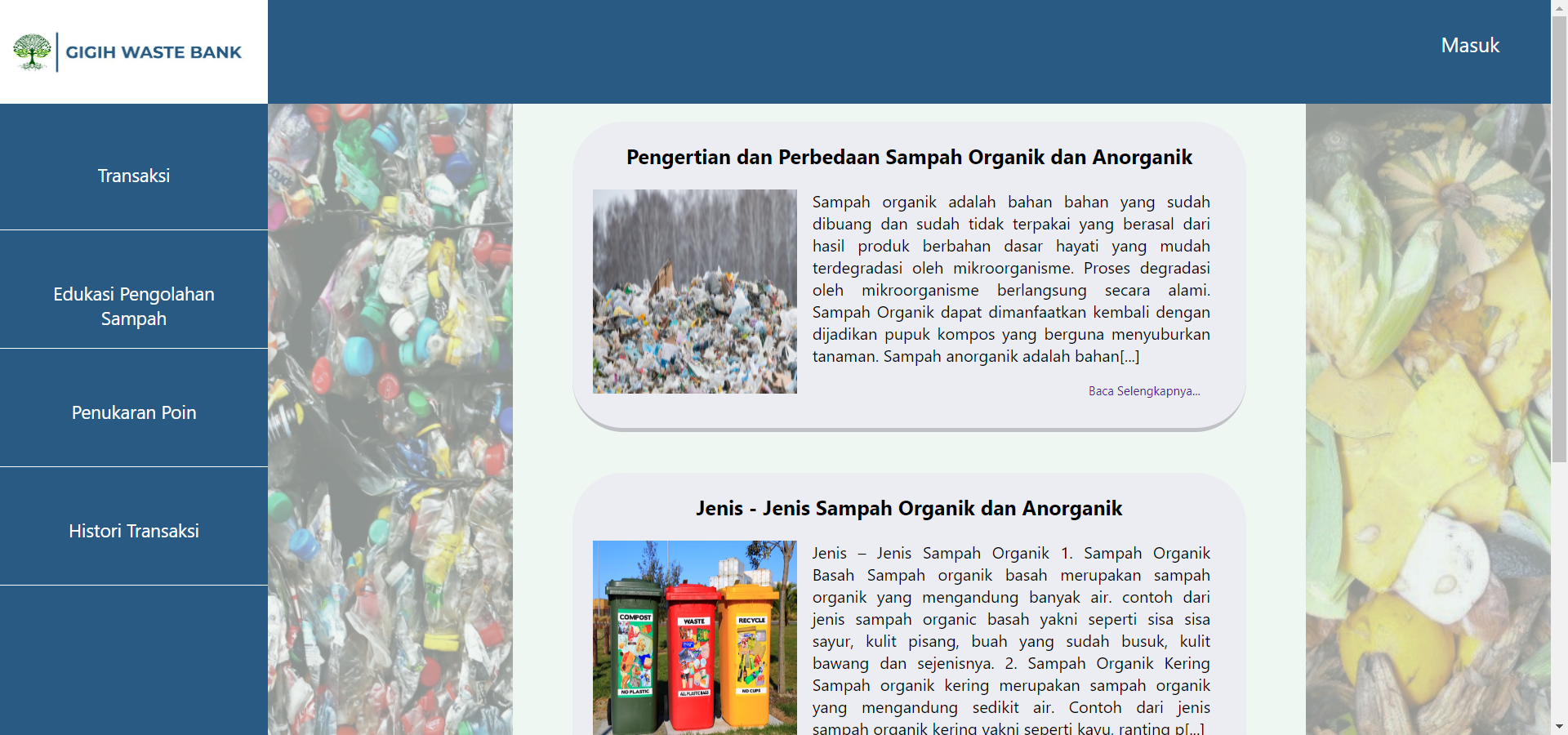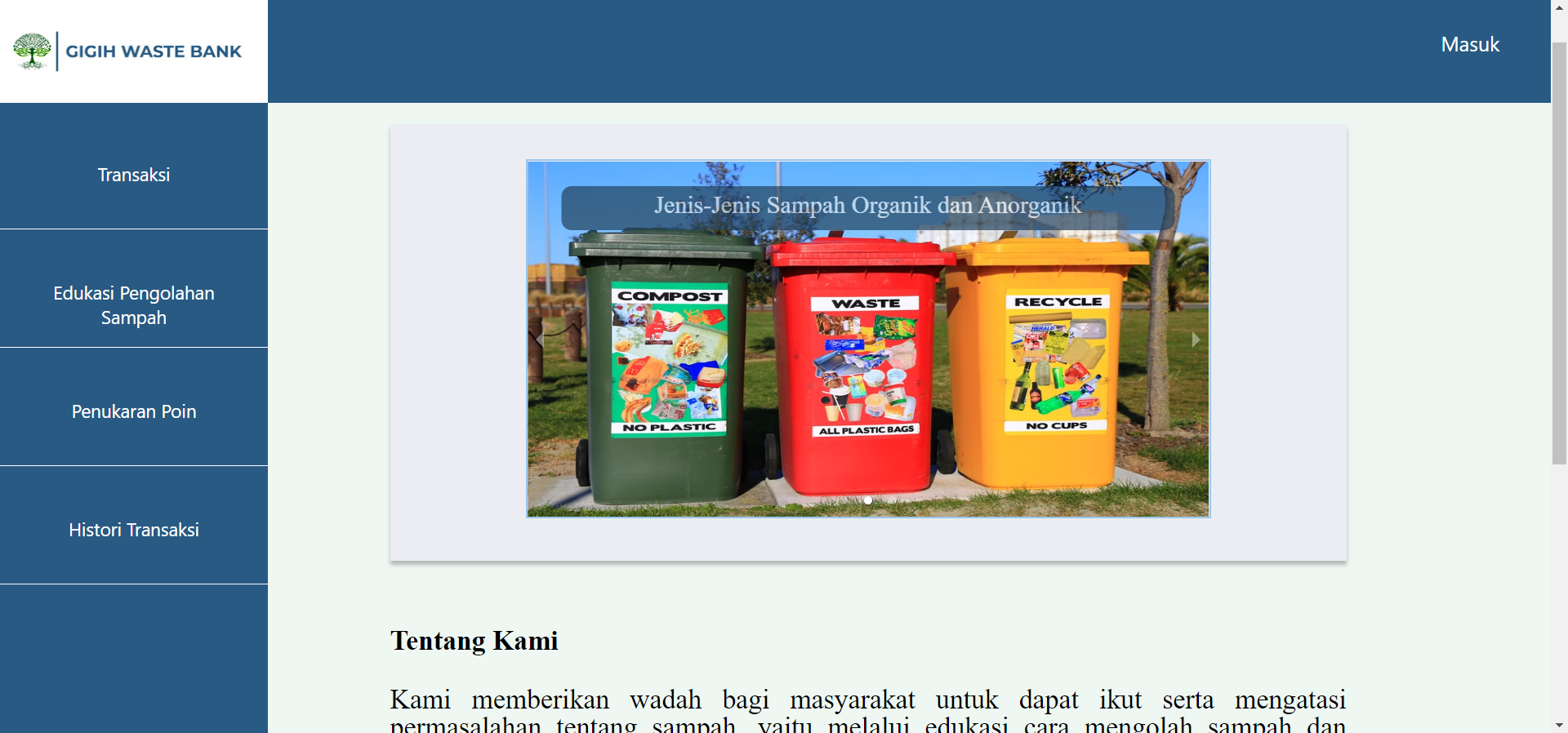 Untuk Link website dapat dilihat di sini: Gigih Waste Bank