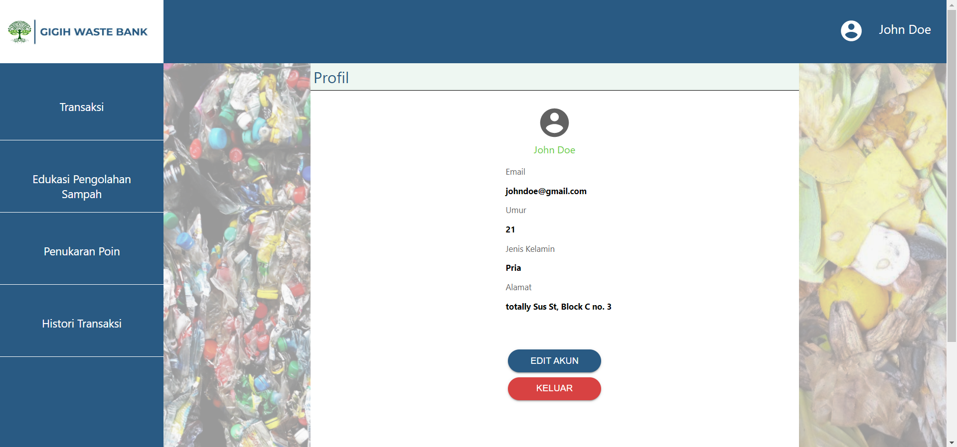 - 🏃♀ Logout from Gigih Waste Bank account.