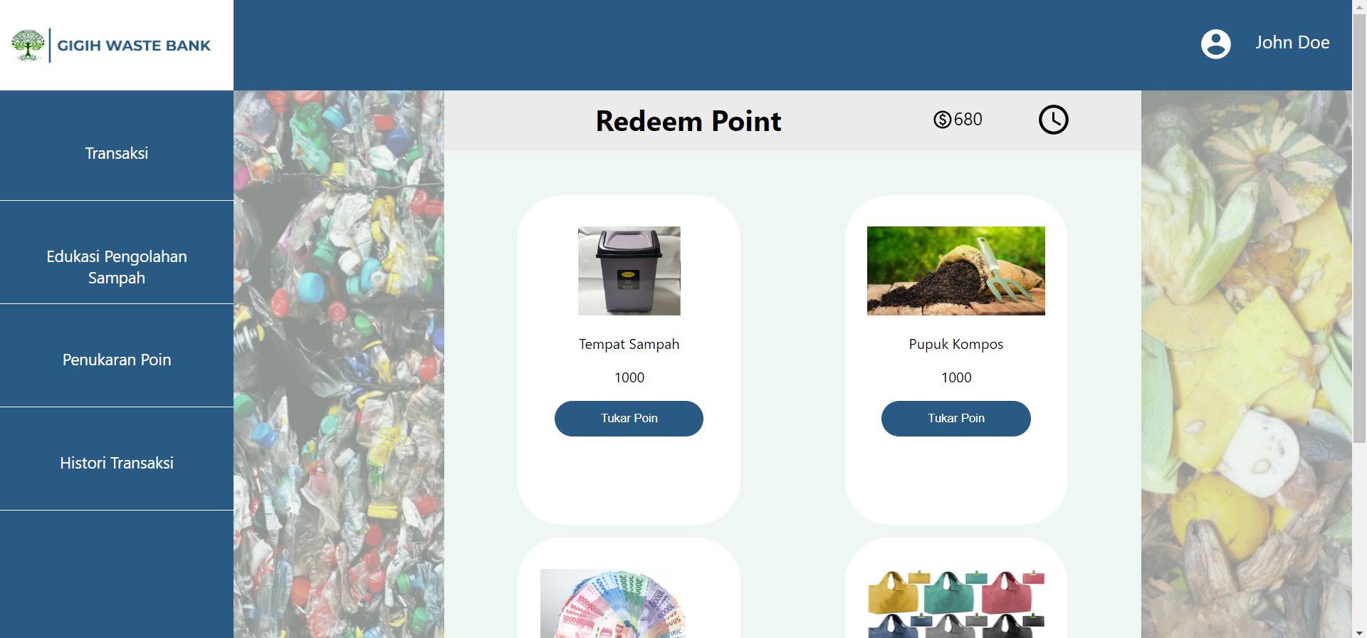 - 🕒 History page : Users can find out the history of the waste exchange transactions to the points they have done.