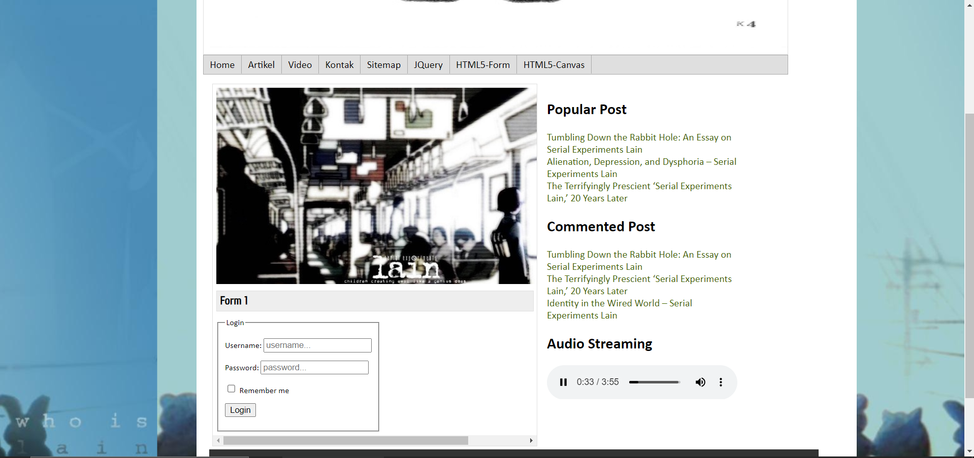 Project description: Project berikut merupakan website pertama yang saya buat di saat Semester 2. website tersebut dibuat dengan html, js dan css. isi dari website tersebut hanyalah content yang seringnya berada di website ala blog.